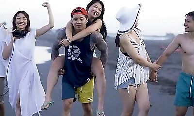 Group of insatiable Japanese folks toss a wild group lovemaking orgy at the beach