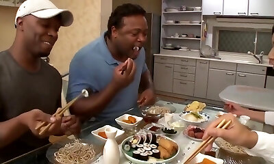 Asian hottie Marica Hase sucks and fucks a big ebony manmeat