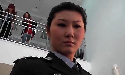 Hard boned Asian reporter screams beautifully and gets a pop-shot, listen to that beautiful voice