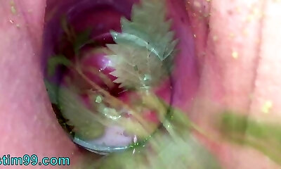 Extreme damsel inserting nettles into cervix and rod flowers