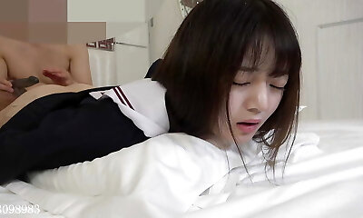 Uncensored. 18 year old cute fledgling. She is a Japanese beauty with black hair. She has a blowjob and internal ejaculation sex