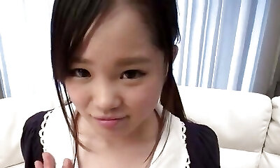 A Barely Legal-year-old slender black-haired Japanese sweetheart. She has shaved slit creampie sex and blowjob. Uncensored