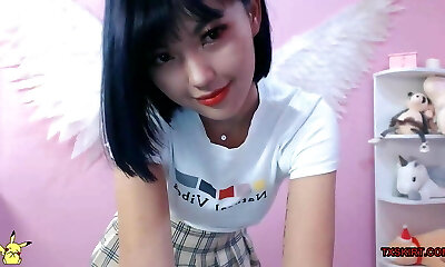 Korean Adult Camgirl Teases Perky Knockers and Spreads Her Legs
