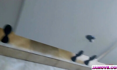 Enthralling Japanese cutie plays with pussy on a spy camera
