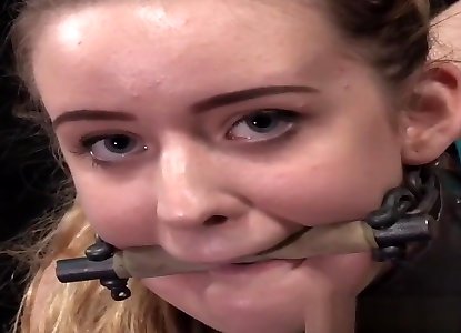 Youthfull tied like a hog sub flogged while facehole ball-gagged